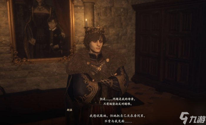 到公妃迪莎的房间,桌上拿到之前你帮斯温买的机关盒,然后直接把迪莎抱走,抱到斯温面前,并把机关盒交给斯温,母子俩就和解了。