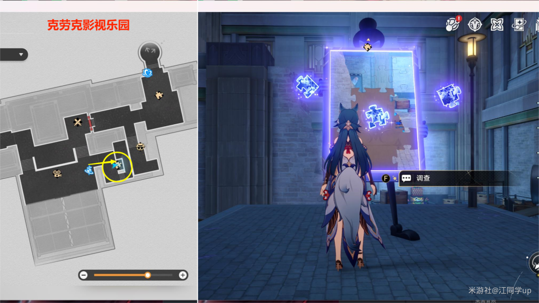 (1)来到【克劳克影视乐园】下图拼图位置【调查】后,3个拼图碎片会飞走