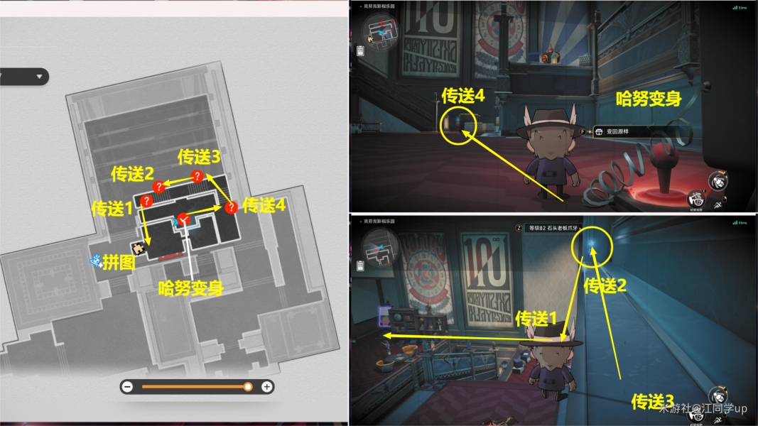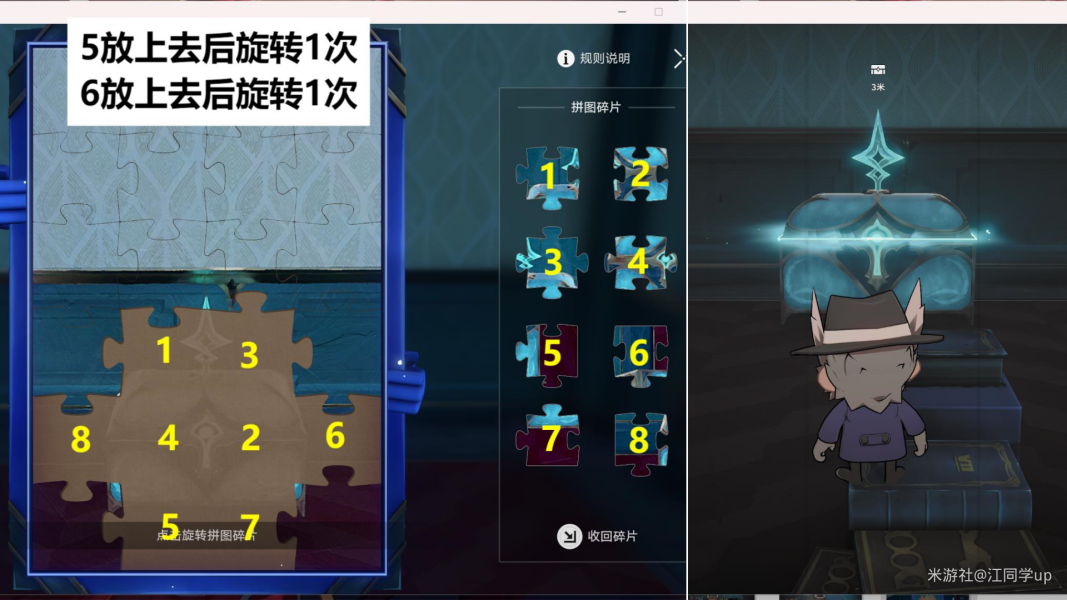(6)最后再下去变身哈努,从【传送4】原路返回去完成拼图即可