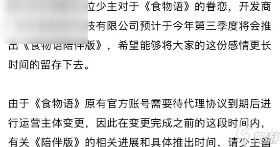 食物语关服了还能玩吗?食物语关服以后,官方表示在今年的第三季度即可推出《食物语陪伴版》,且这款游戏是完全没有任何盈利模式。下面小编就为大家带来一些简单的关服后续,一起来看看吧!