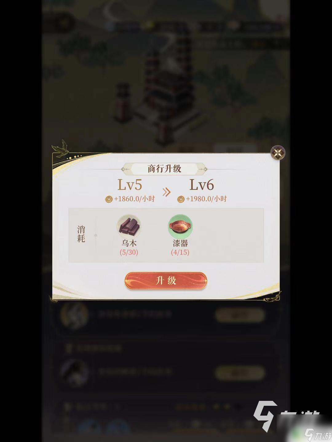 4、据点商行。据点里面经营商行是玩家离线挂机的收益,首先需要解锁你最少一个据点,然后点击经营页面,选择经营商行。如果该据点已有经营的书馆、琴行,则需要额外消耗建筑包更换成商行。升级4级商行每小时可以获取1800枚五铢钱,六级商行接近每小时2000五株钱,离线收益还是很可观的。