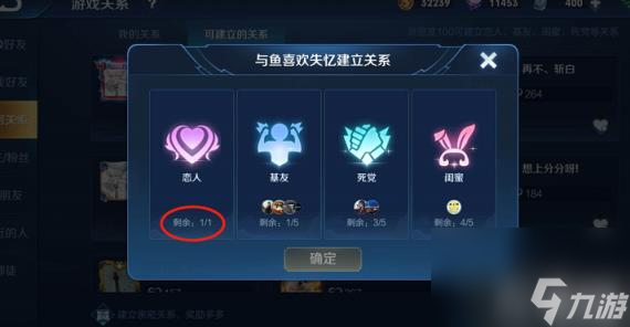 第五步,恋人关系有且仅有一个,图中显示的1/1,那说你还没有恋人,显示0/1的话,就说明你已经有恋人了!