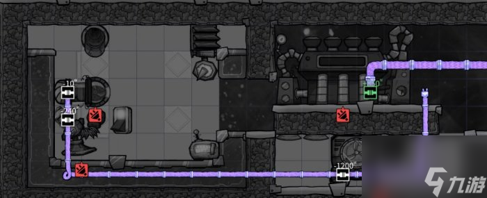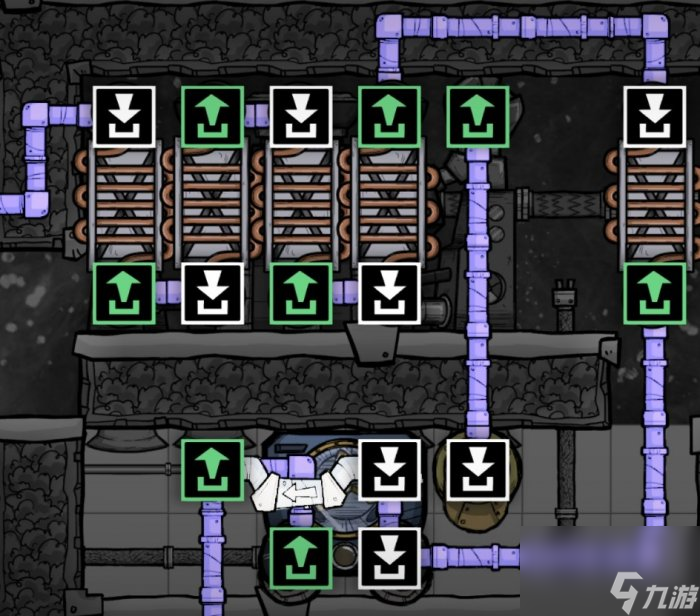 按图中所示造上建筑(我建议先造管道、电线、信号线,只是担心新手虚空拉管困难所以先造建筑,大家可以摆上蓝图比划比划,先把背景建筑造了),液泵上面那个玩意是液体计量阀,其他的都是老朋友了。