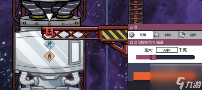 在给火箭灌燃料之前,最好先算好需要多少燃料,然后给对应的燃料舱或氧化剂仓设定好上限,比如我们需要699kg燃料和氧化剂,如图所示