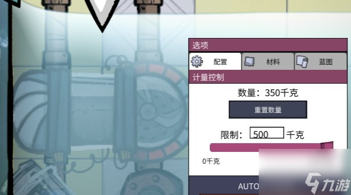 点击计量阀,可以设置0-500kg,比如图中设置的是500kg,上面显示的350kg指的是已经流过计量阀的数量,当流过的液体量达到设置的500kg后,计量阀就会关闭不再输出液体。由此,我们精准的输出了500kg液体。