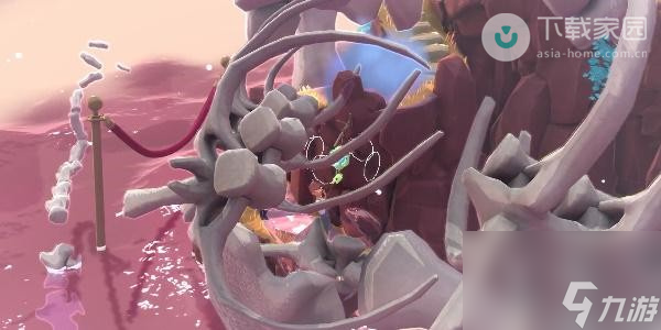7、最后骨架会如下图所示环绕整个岛屿,之后玩家即可借助骨架去往终点,将灯笼放上去即可通关。