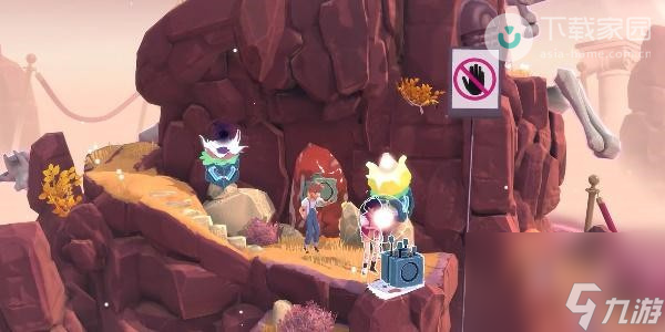 3、此时玩家需要向后面退,将光收到灯笼里面,接着需要去触发下图位置开关,之后骨架会更加聚拢,最后会散落到岛上;