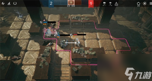 2、在移动【巨山】,让巨山攻击敌方【侍卫】,并使自身和敌方【侍卫】向右移动一格