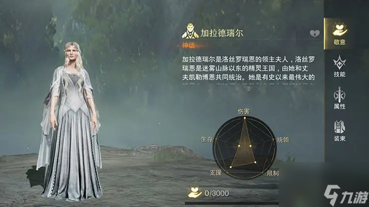 游戏中,加拉德瑞尔作为神话级指挥官,是一位非常有智慧和力量的精灵族领袖。