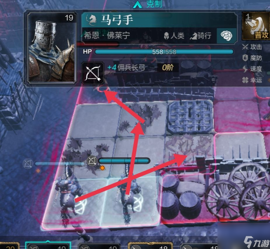 双弓骑正式开始接战,下图下方的弓骑先动。