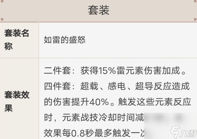 2、如雷的盛怒四件套:可以获得雷元素伤害加成,输出的期望值很高还能减掉CD ,可以在合成台三合一兑换。