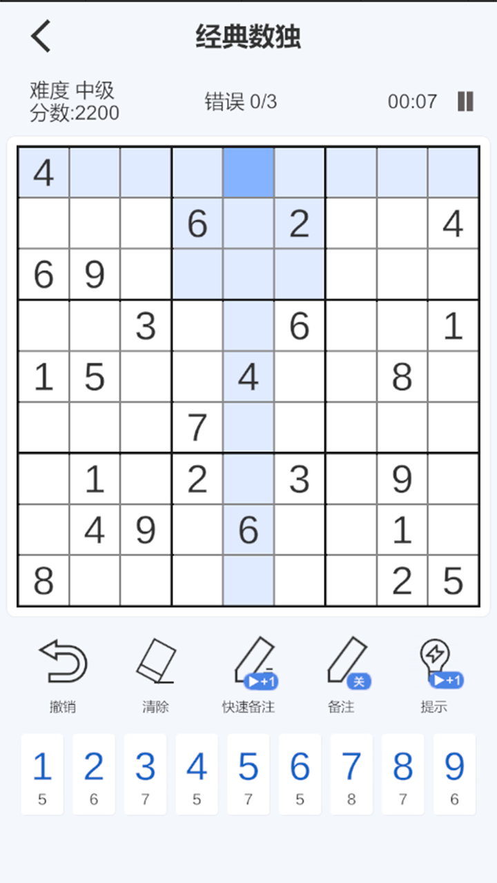 a数独是有史以来最受欢迎的益智游戏之一。用数字填充一个9*9的网格,使每一行、每一列和3*3部分包含1到9之间的所有数字。作为一种逻辑谜题,数独也是一种极好的脑力游戏,坚持下去你会看到注意力和整体脑力的提高。
