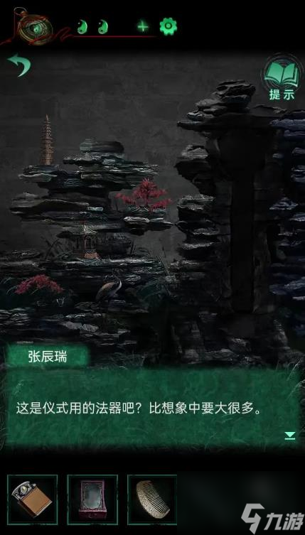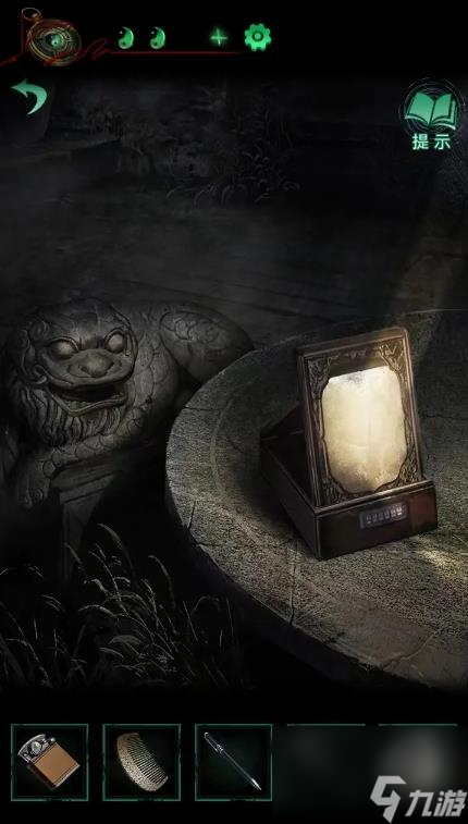 10、把电话接起来,高能,捡起播号盘外壳,发现是十字的,回大门外石狮子下面开拧,左边是壬丙丁己甲,获得了钥匙;