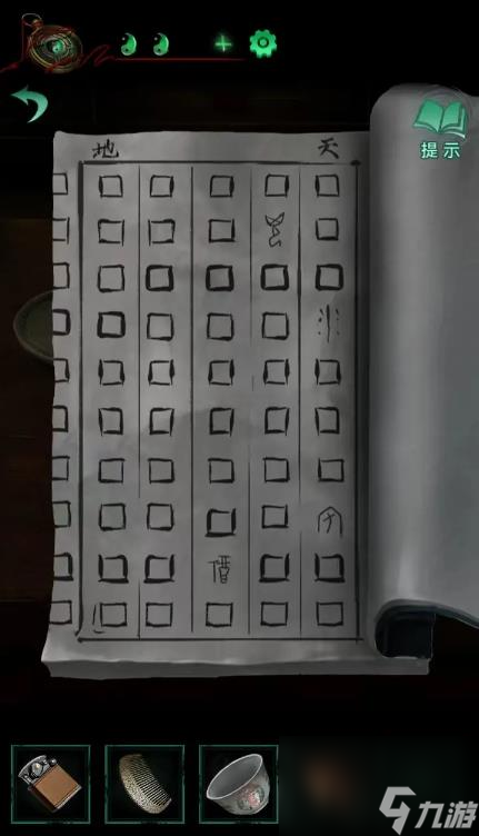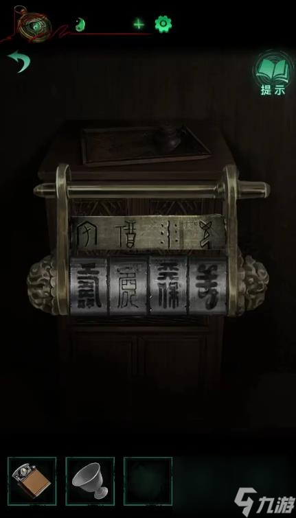 14、拿着钥匙打开主宅大门,去右边柜子,根据五行相克原理,转动太极图案,把金色的方块放在相应克制的方块上面,获得铃铛,且获得福禄寿线索;