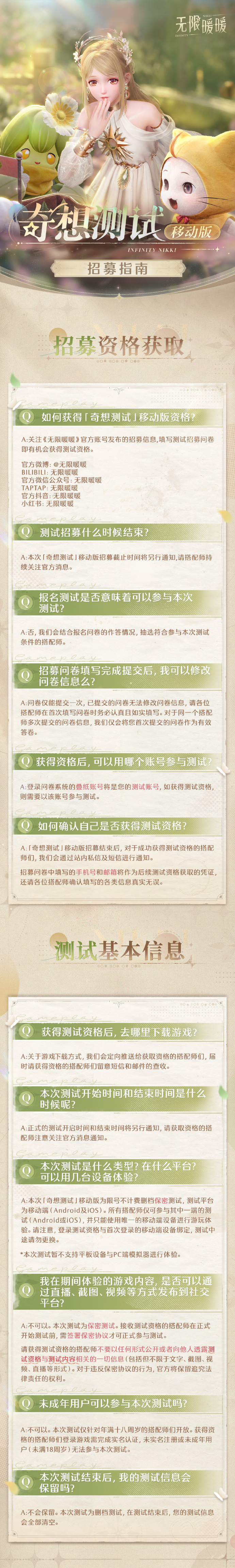 4、「奇想测试」移动版仅对经过实名认证已满18周岁的玩家开放,未经实名认证或未成年玩家将无法参与测试,感谢您的理解。