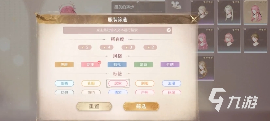 而10大标签又分别是防晒、礼服、居家、制服、浪漫、幻想、简约、清凉、户外、休闲。如果玩家想要自己的游戏变得更加简单轻便,我们可以先给不同的服饰进行筛选标签,之后再进行搭配的时候,直接选择对应的标签就会出现里面所有的服饰,搭配也会更加顺利一些。