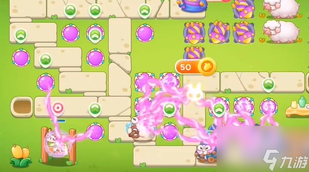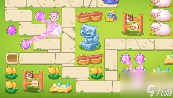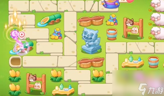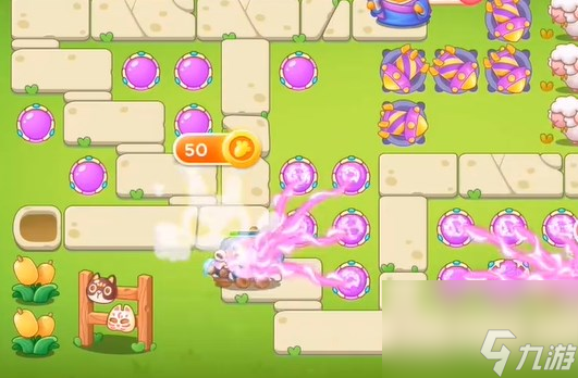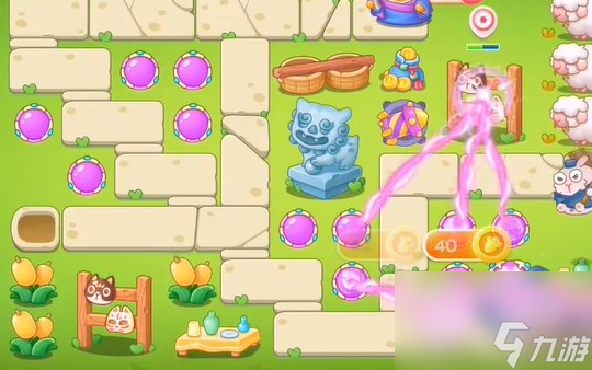 4、使用魔法球将上方的道具清除掉,获得多个烟花炮台。