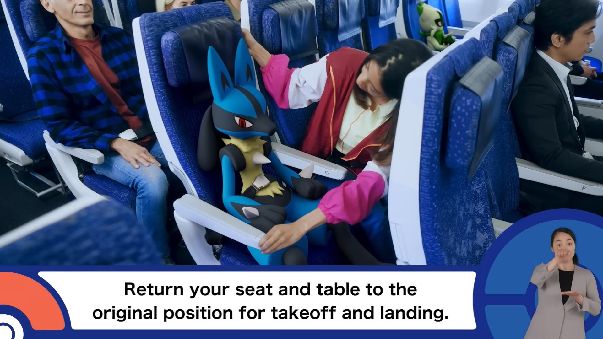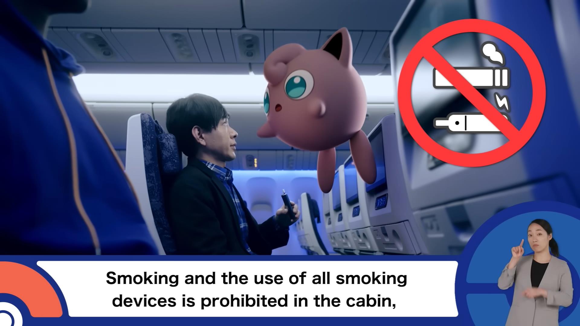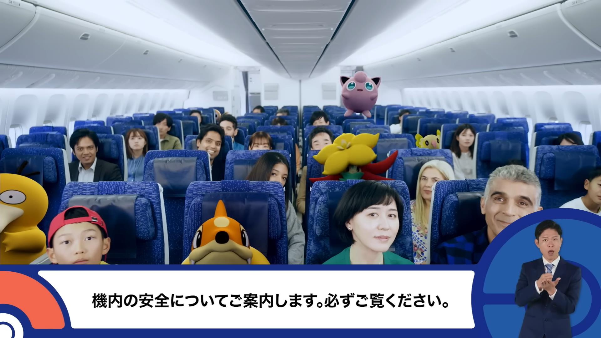 在视频中可以看到,宝可梦不仅与人类一起作为乘客登上飞机,还在安全宣传视频中担任了“教具”,甚至还有胖丁对违规吸烟的乘客生气的有趣场面。