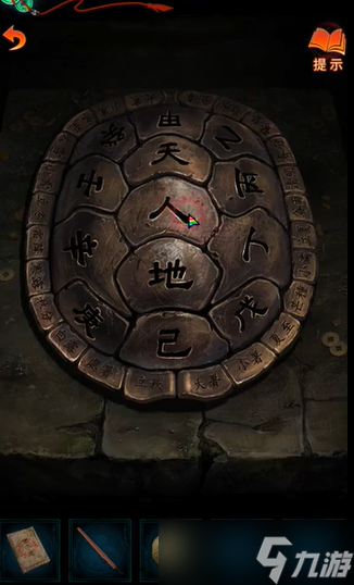 1、玩家完成算命左侧的击鼓后,就可以拿到龟壳上缺失的一块,然后将其装在壳上