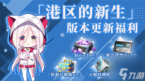 ※此次「港区的新生」版本更新完成后,联盟将发放「钻石x300」、「紧急调遣证x10」、「资源存储箱x3」、「天赋回溯模组x1」,指挥官可以登录游戏,从邮件中领取。