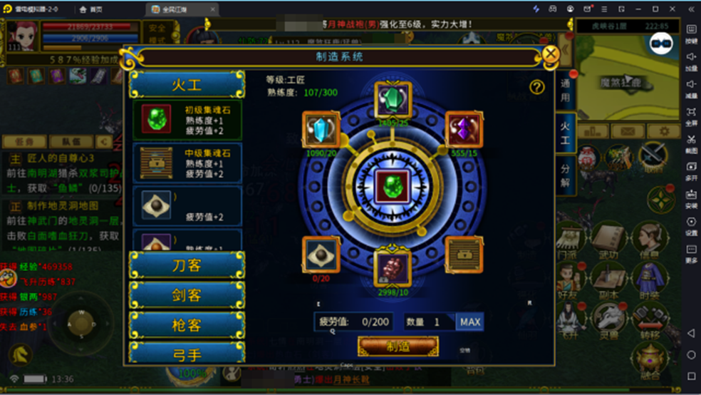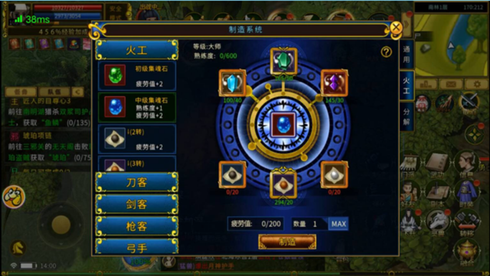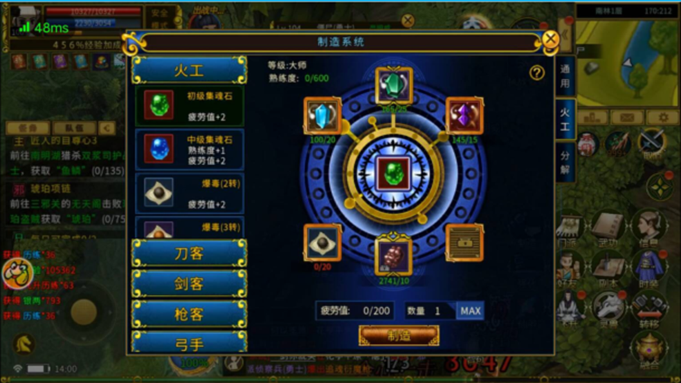 大家也可以通过泫渤派的NPC放弃副职业重新学习新的副职业,裁缝可通过摆摊功能买卖防具衣服可赚取元宝,锻造看制造各种各样的铁丝去买卖,火工制造爆毒以及武器衣服所需要的集魂石。