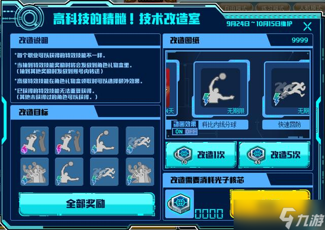9月24日维护后技术改造室正式上线,每个职业可以获得的特效技能不一样,当抽到特效技能奖励时奖励会发到角色礼物盒中,抽到其他奖励时会发放到账号内转送,高级特效技能在角色礼物盒领取时可以选择额外效果。已获得的特效技能无法重复获得,其他未获得过的角色可以获得。