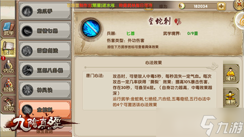 在《九阴真经》手游中的极限流派的组合都需要的是内功的配合,例如少林韦陀棍需要残阳,毒蟾功可以增幅徒手武学。同样内功的进阶也非常重要,日常的进阶丹和残卷积累必不可少。回到心法,内功的搭配选择前提条件是要触发心法,其次在是对于单种类型伤害的增幅考虑。