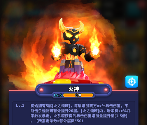第二个是火神,相对应的火系塔可以获得[火焰伤害加成]的增幅。