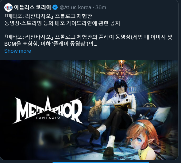 另外,韩国Atlus官方X在早些时候还曾泄露过试玩版的消息,他们发布了一则推文称《暗喻幻想》试玩Demo将在今天14点上线Xbox,15点上线PlayStation,明天凌晨0点上线Steam,该推文随后被迅速删除,目前尚不清楚Atlus将在何时正式宣布该消息。