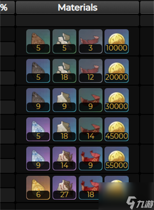 50级突破材料:谧林涓露的铁符*9,密固的横脊*9,镶边红绸*9
