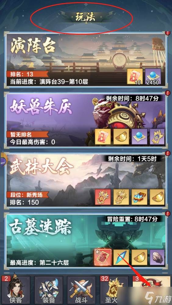 玩法副本:玩家通过一定关卡可以解锁此页面的众多玩法,在这些玩法中同样可以获得玩法奖励,可用来兑换和提升。
