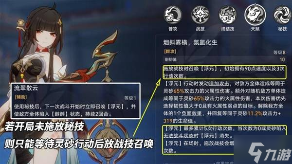需要注意的是,「浮元」的机制很特殊,每次行动会消耗行动次数,需要间歇性施放灵砂战技给它增加3次行动次数。