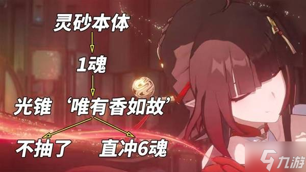 灵砂本体->1魂->光锥‘唯有香如故’->不抽了/直冲6魂。