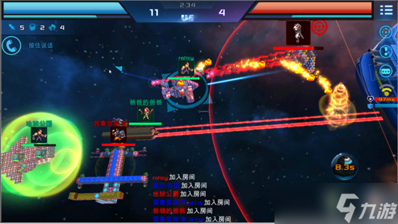 中距武器“吸血”是一个非常强大的武器,在前期敌人火力没有强大到可以瞬秒的阶段时,只需要配备多个吸血武器,便能在战斗中将血量慢慢的吸上来。大家可以看到右上红色方的战舰足足带了4-5个吸血武器,吸血的速度那是相当爆炸,同时搭配一些近战队友,让他前面帮你抗,你只需要在后面慢慢吸血便可,此武器CD时间也不长,绝对是一个有效的套路。