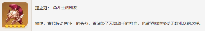 作为输出角色时,由于当前版本没有优势明显的圣物4件套,因此携带角斗士2件套以及对应的元素伤害增强2件套,通用性较强。其他攻击2 件套也是如此。