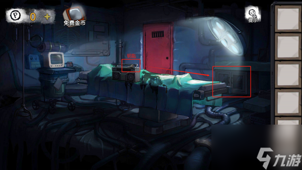 房间一:治疗室 收音机上拿到【钥匙】,使用【钥匙】打开右边的柜子。