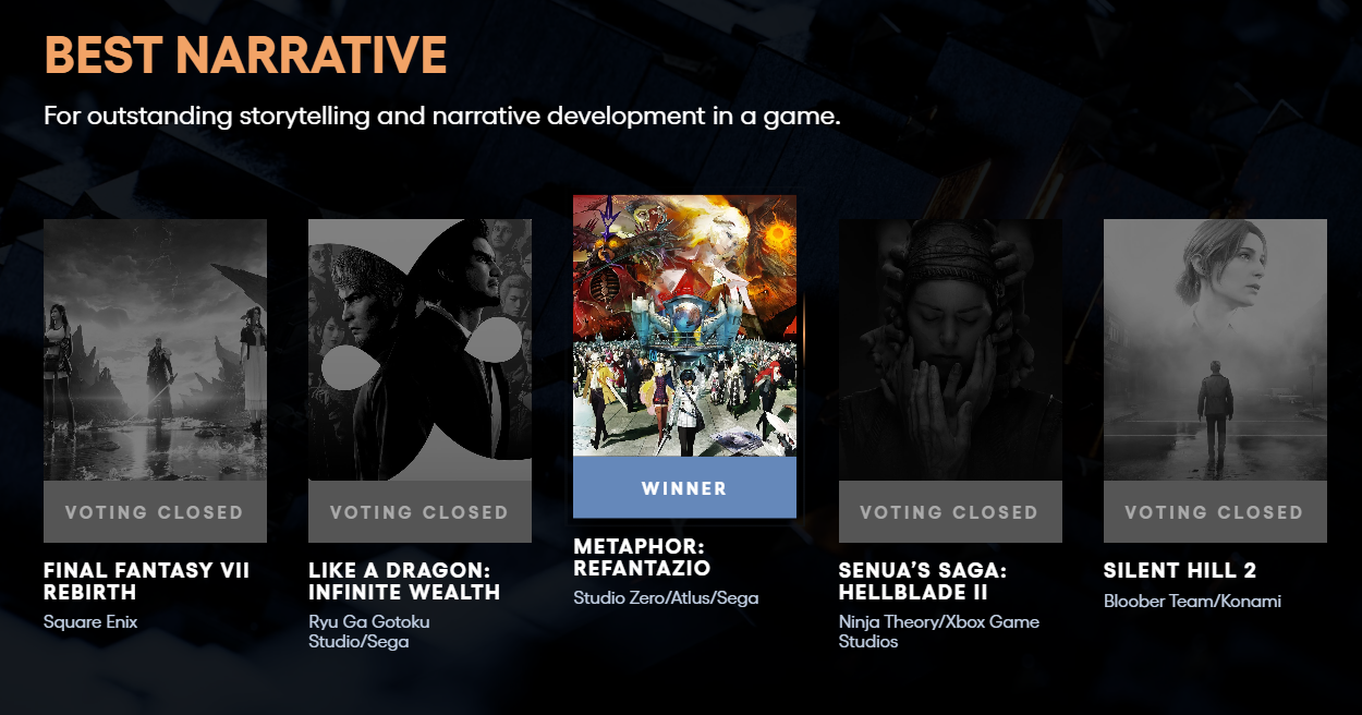 TGA 2024:《暗喻幻想》获得最佳叙事游戏