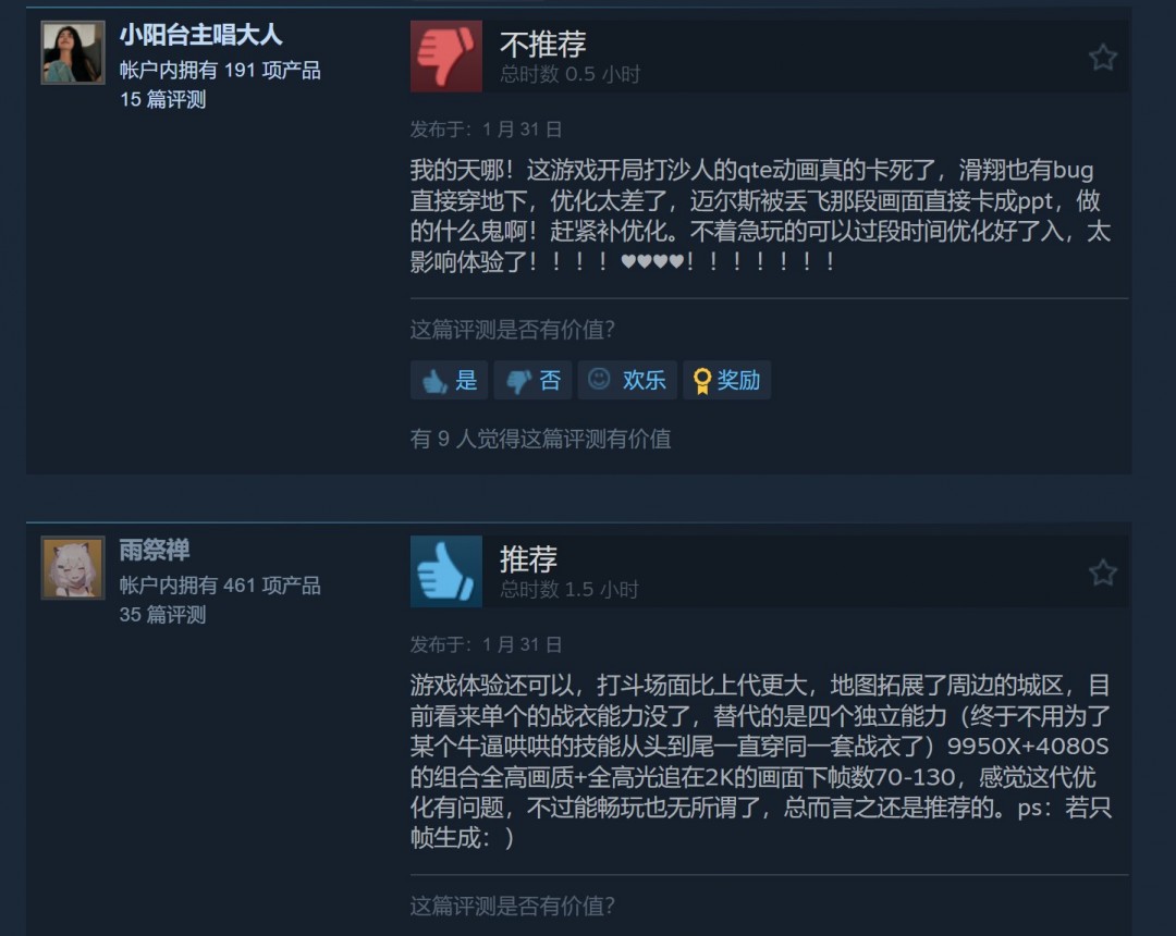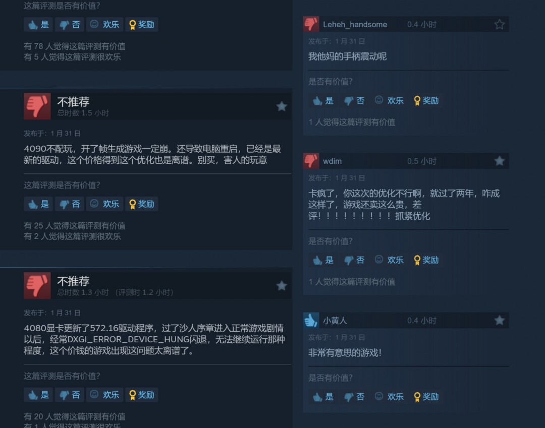 《漫威蜘蛛侠2》好评率低的原因主要是两个方面。一个是PC版的优化似乎有一些问题,尤其是游戏开局打沙人的QTE动画太卡,也有人反应沙人序章过了之后,遇到DXGI_ERROR_DEVICE_HUNG闪退,无法继续运行游戏。