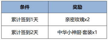 活动期间累计签到送中华小神厨套装、亲密度道具好礼!