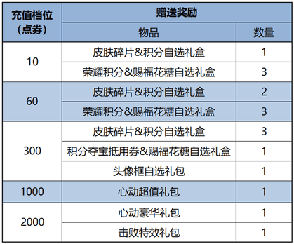 皮肤碎片&积分自选礼盒:打开礼包可任意选择以下奖励之一:荣耀积分*10或皮肤碎片*1