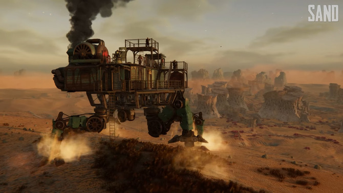 《Sand》故事发生在广阔的开放世界、充满挑战的生存环境以及激动人心的巨型载具“Trampler”战斗。 玩家将在废弃星球Sophie上探索,与其他玩家展开对抗,收集珍贵资源,并最终逃离这颗星球。