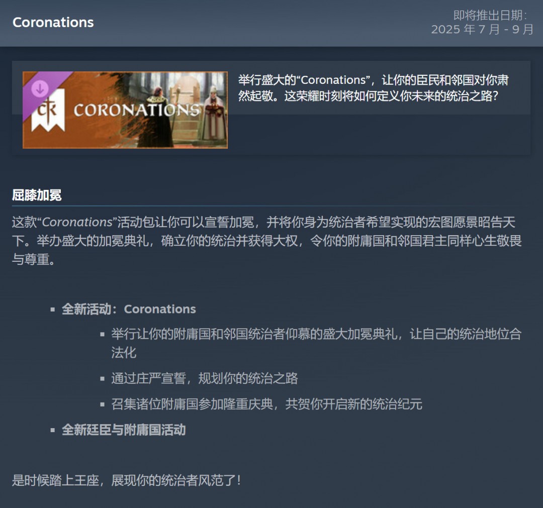 事件包:「加冕典礼」 即将推出日期:2025年7月-9月