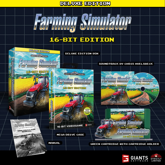 ·《Farming Simulator 16-Bit Edition》将对应世嘉MD的卡带以及官方授权的替换主机,这部奇葩游戏原本是《模拟农场25》的收藏版附赠的惊喜礼物,没想到收到玩家的热烈好评后,单独拿出来推出。