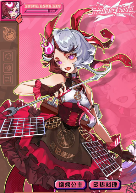 张公主的第三个技能是烹饪技能,在张公主进入到赛场时,可以旋转手中的火炉,并且对周围的敌人附加有火属性的debuff,再一次攻击时,张公主主对敌人的攻击会附带有10%的火属性附加伤害。