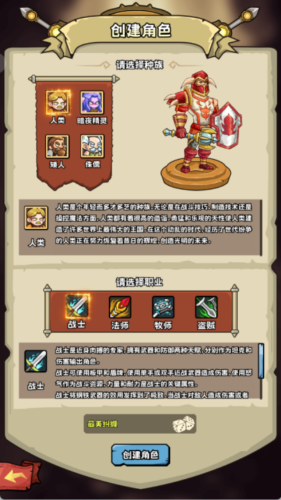 人类可选择职业有战士、法师、牧师和即将开放的盗贼;