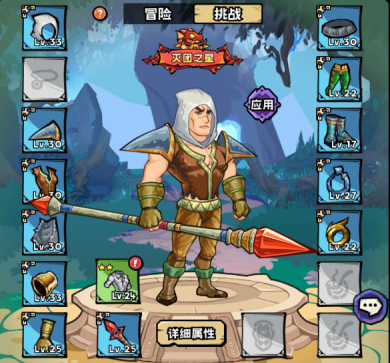 a. 装备系统分为冒险装备和挑战装备