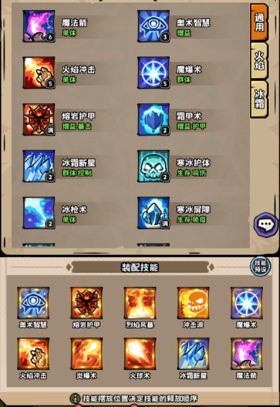 1. 选择火焰天赋,可选择通用技能+火焰技能搭配