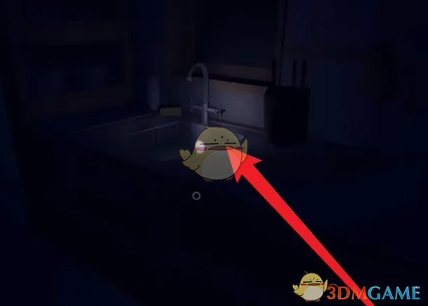 2、然后在厨房中,找到发光发亮的水池,靠近这个位置;