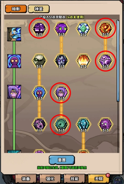 图中是40级的暗牧加点,暗牧跟群攻技能有关的天赋点不多,优先点红框内的群攻技能相关天赋点即可。其他天赋点按照自己理解加即可。