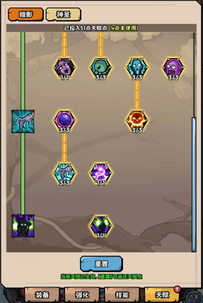 牧师因为群攻能力相对较弱,是三个职业里升级比较慢的(但是目前唯一会治疗的职业),技能顺序其实只需要把暗影漩涡和圣域冲击放前面即可。后面的单体伤害技能和恢复、盾技能可酌情放到幽影涌动前面(幽影涌动没有冷却时间,放在它后面的技能都是放不出来的),提高单体能力和降低食物消耗。